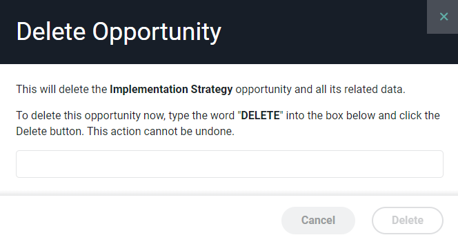 Once you delete an opportunity, you cannot reverse this action and all associated opportunity, file, and activity data will be gone forever!