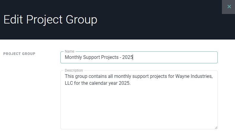 There may be cases where you have a subset of related projects amongst a portfolio of engagements within the same client. Ruddr's Project Groups feature provides a mechanism for grouping such a subset of projects for reporting and filtering purposes. For example, you have a collection of various support projects for a client and you want to collectively report on the performance across all of those support projects.