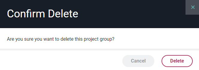 If you choose to delete the project group, you will be prompted to confirm (Figure 5) the deletion. On the confirmation window, click the Delete button to proceed with deleting the project group.