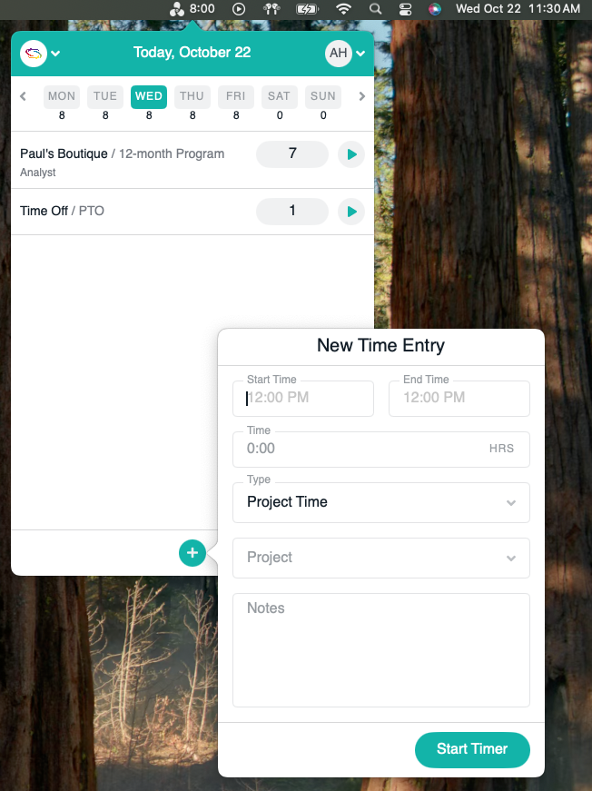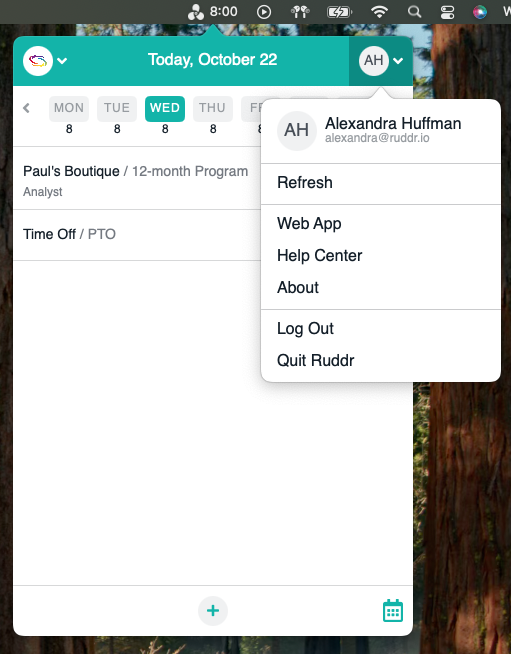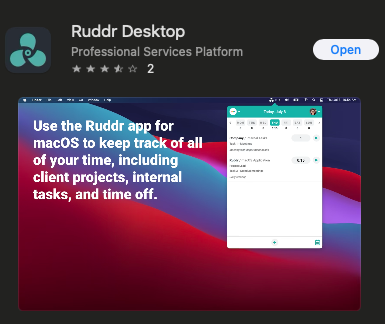 MacOS users have the ability to utilize a desktop version of Ruddr in the navigation bar. The main purpose of this tool is to input time entries quick and efficiently.