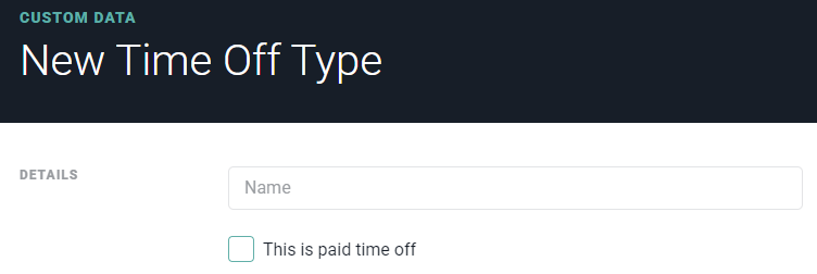 Unpaid Time Off - When creating a time off type, it is set as a Paid time off type by default. You can disable this This is paid time off setting to create a time off type that is treated as "unpaid" time off: