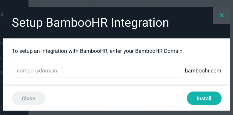 You will be prompted to enter your companies BambooHR domain information. (Figure 2) Once added, click Install to be redirected to BambooHR.