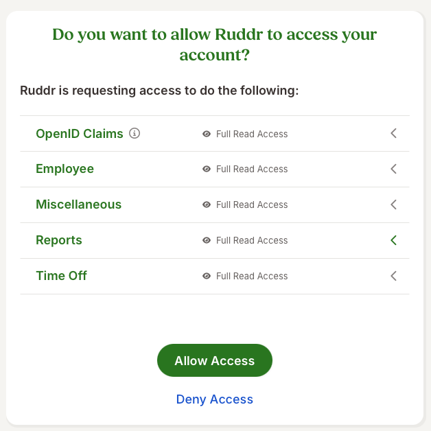 Figure 4 - Allow Ruddr to Access BambooHR data