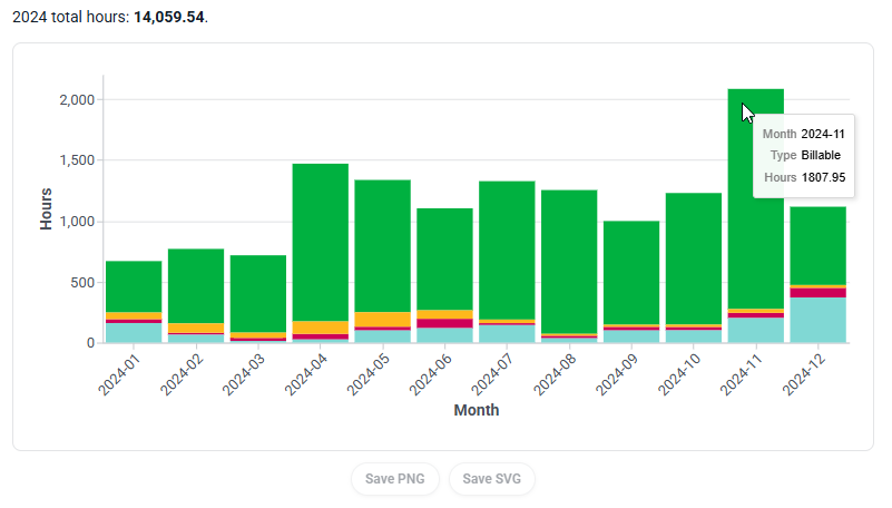 At the bottom of a custom chart, buttons are provided that allow you to easily download the chart as either a PNG (Portable Network Graphic) file or SVG (Scalable Vector Graphics) file (Figure 9). A PNG file is a raster-based format while an SVG file is a vector-based format.